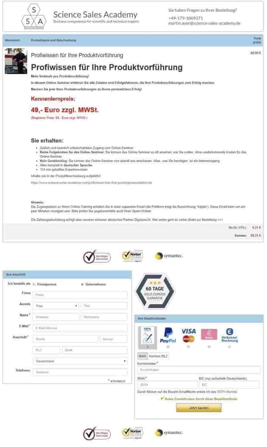 Dieses Online-Training bietet den Erfahrungsschatz und die gesammelte Kompetenz aus mehr als 500 erfolgreichen Produktpräsentationen auf drei Kontinenten in 13 Ländern über einen Zeitraum von 14 Jahren sowie die jahrelange Erfahrung als Kunde im Zielmarkt; sowohl aus eigener Tätigkeit als auch aus Händlerschulungen.