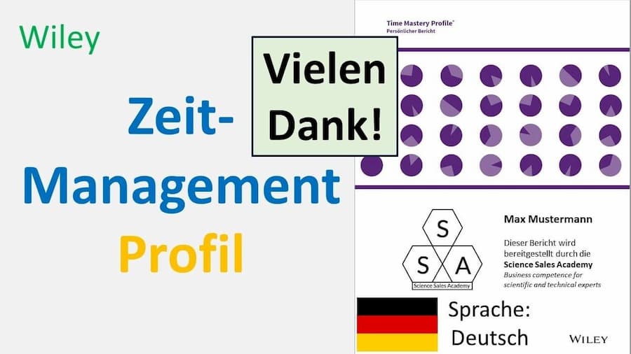 4. Zusätzlich erhalten Sie die Zugangsdaten für den Online-Fragebogen zu Ihrem persönlichen DiSG Zeitmanagement Profil inklusive einer Anleitung. Die Vergabe des Zugangscodes ist ein manueller Prozess. Dieser Vorgang kann bis zu 12 Stunden dauern. Wir bitten um Ihr Verständnis.